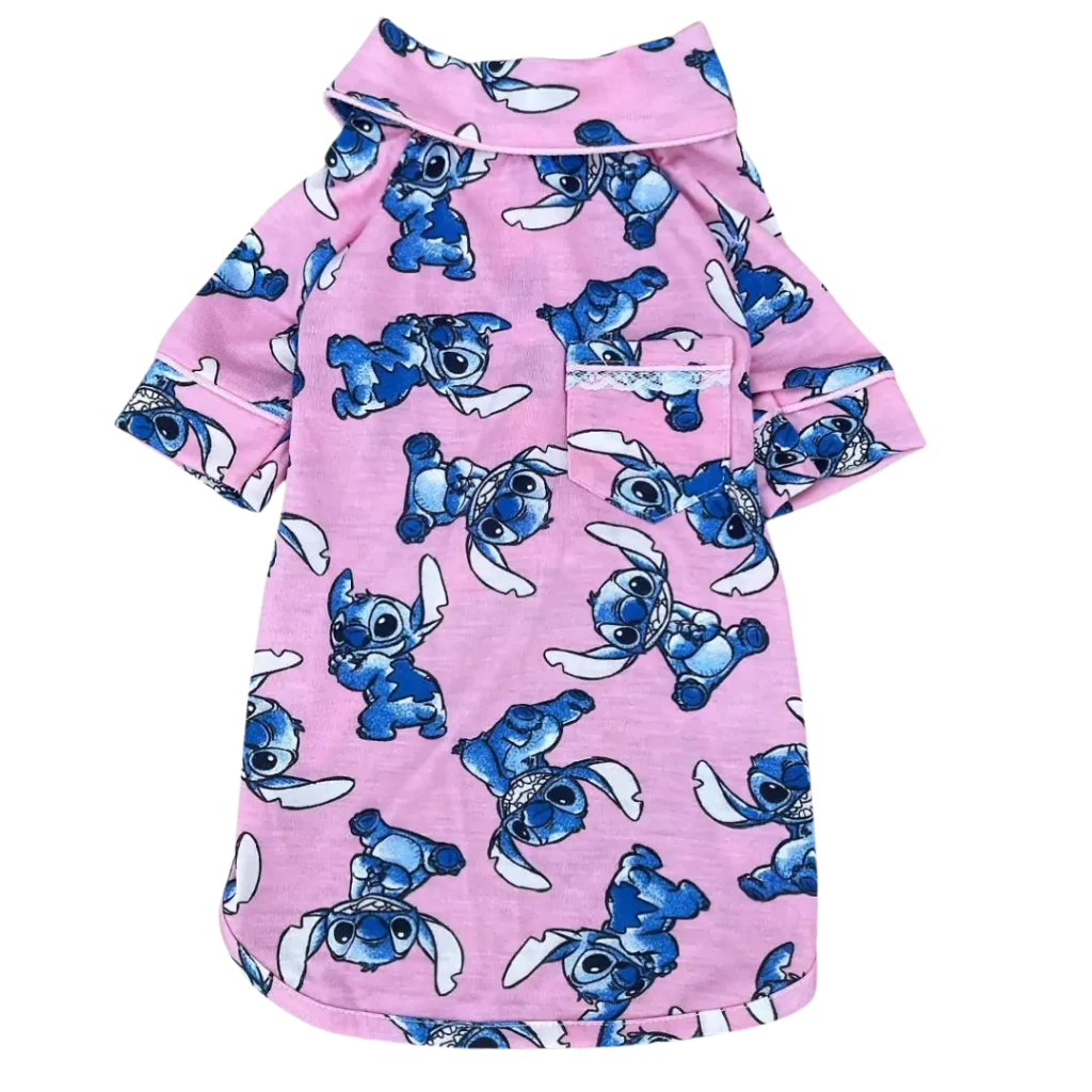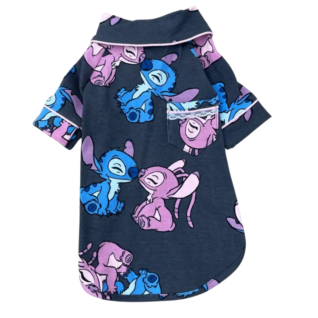 Pijama 2 Patas Stitch e Angel Cinza Chumbo Azul