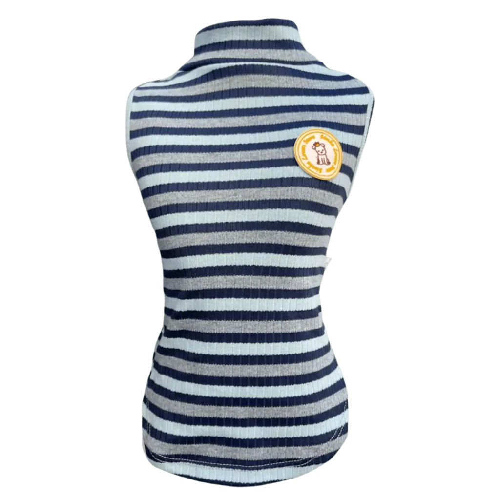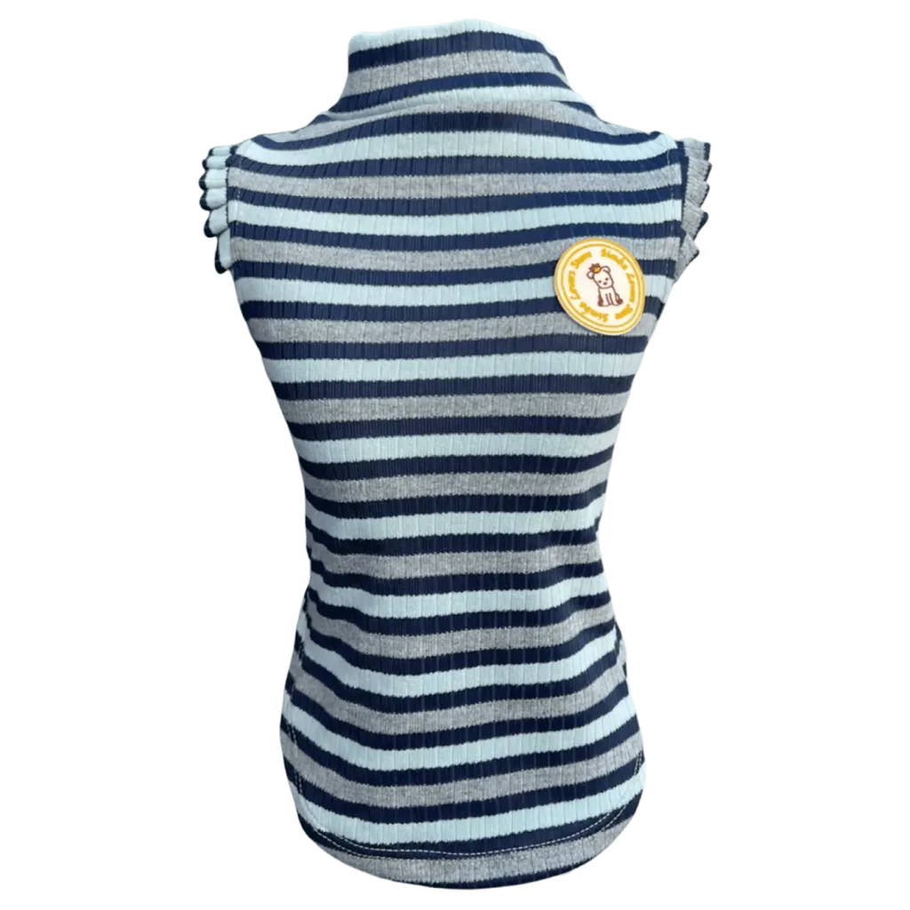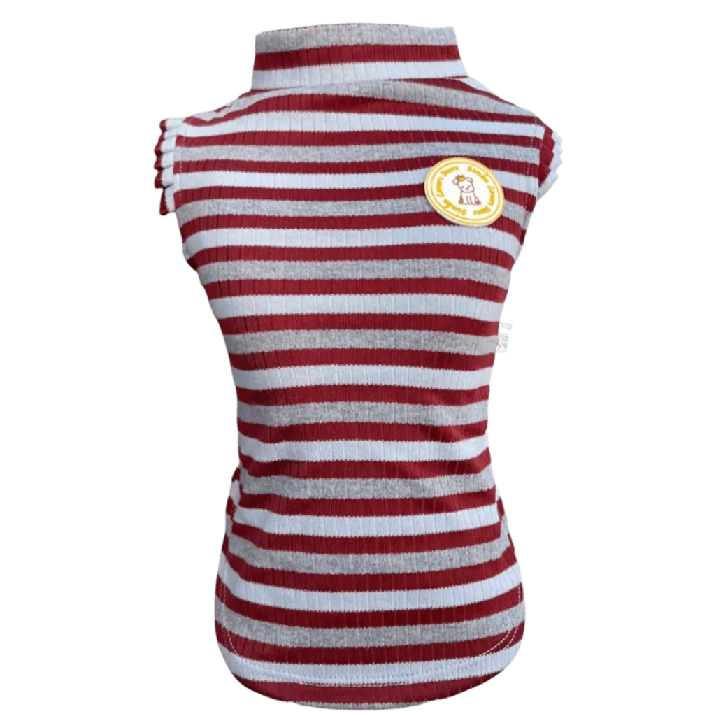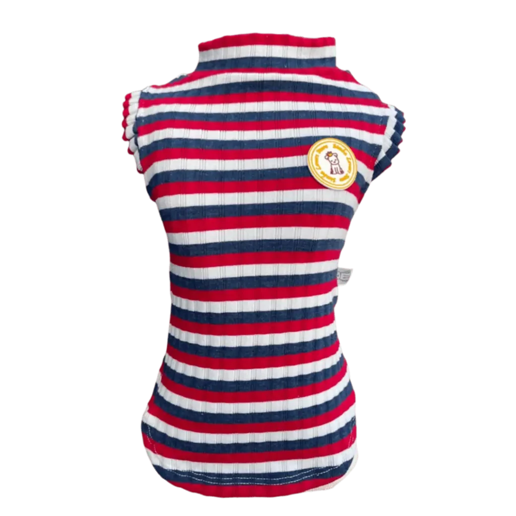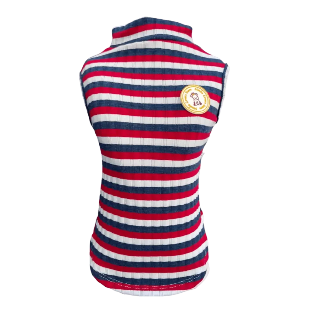 Regata Canelada Suedine Listrada Vermelha e Marinho Fem