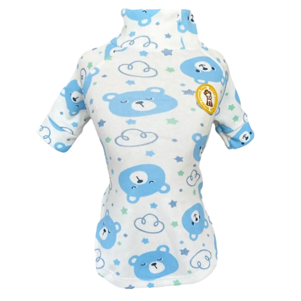 Camiseta Canelada Ribana Ursinho Nuvem Azul