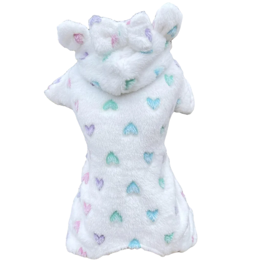 Pijama 4 Patas Fleece Coração Branco Brilha no Escuro