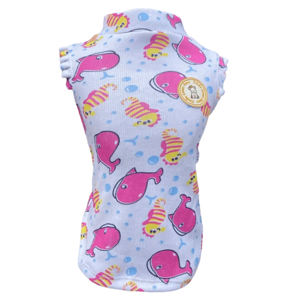 Regata Canelada Ribana Baleia Rosa Bebê Fem