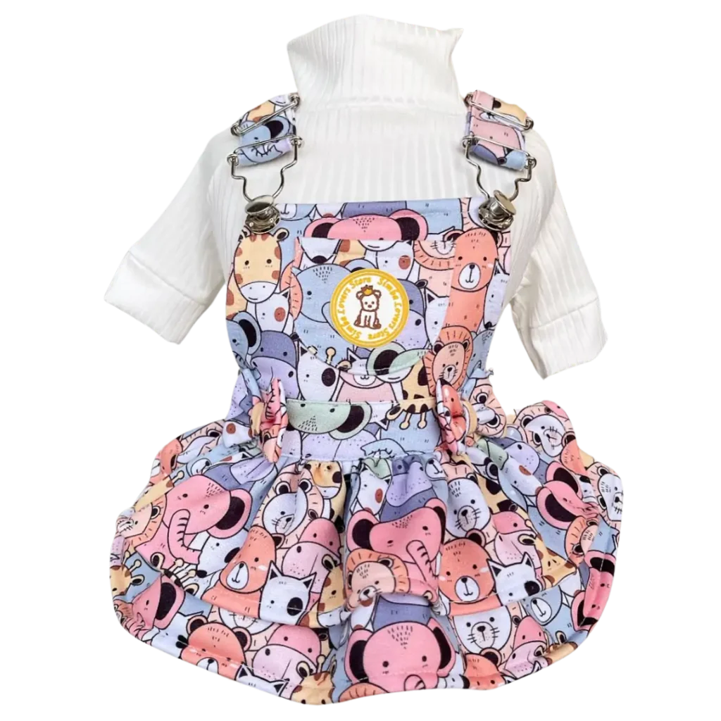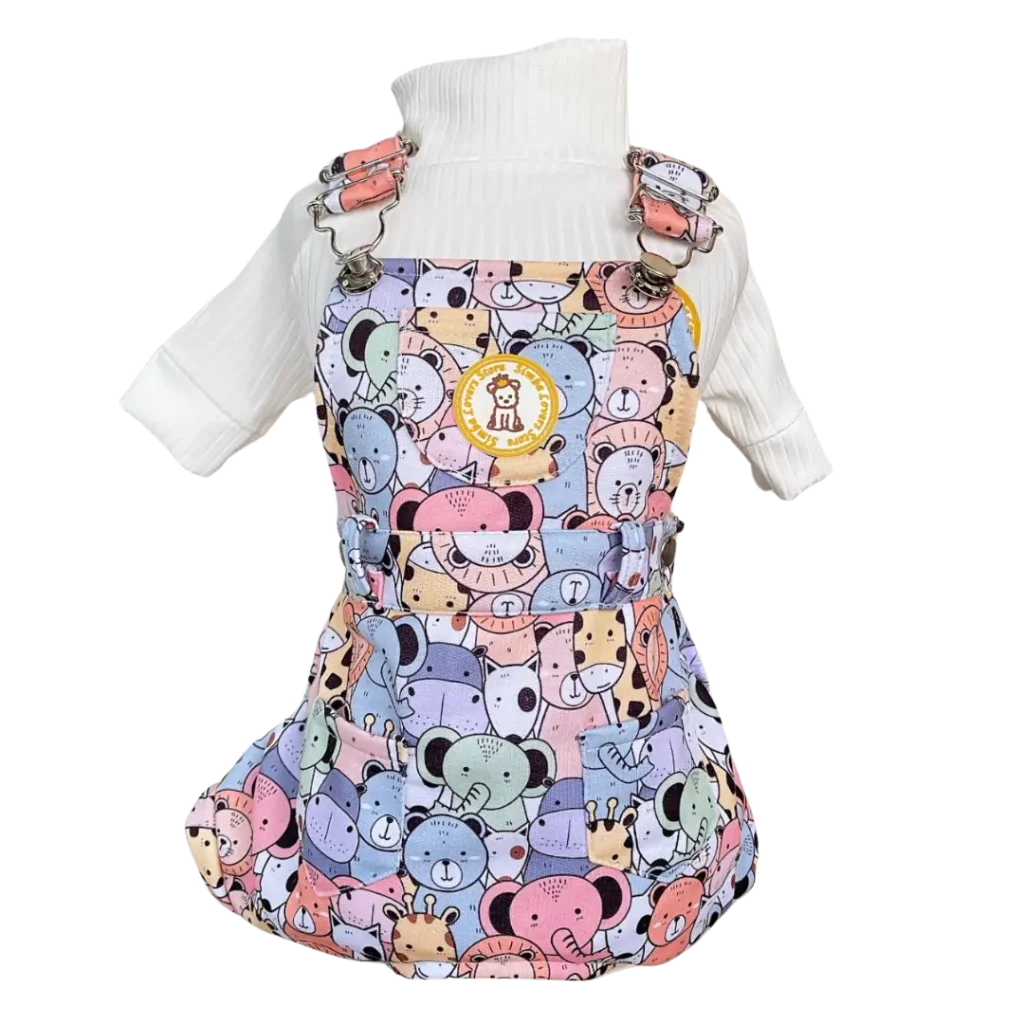 Jardineira Moletom Bichinhos Coloridos Fem (SEM CAMISETA)