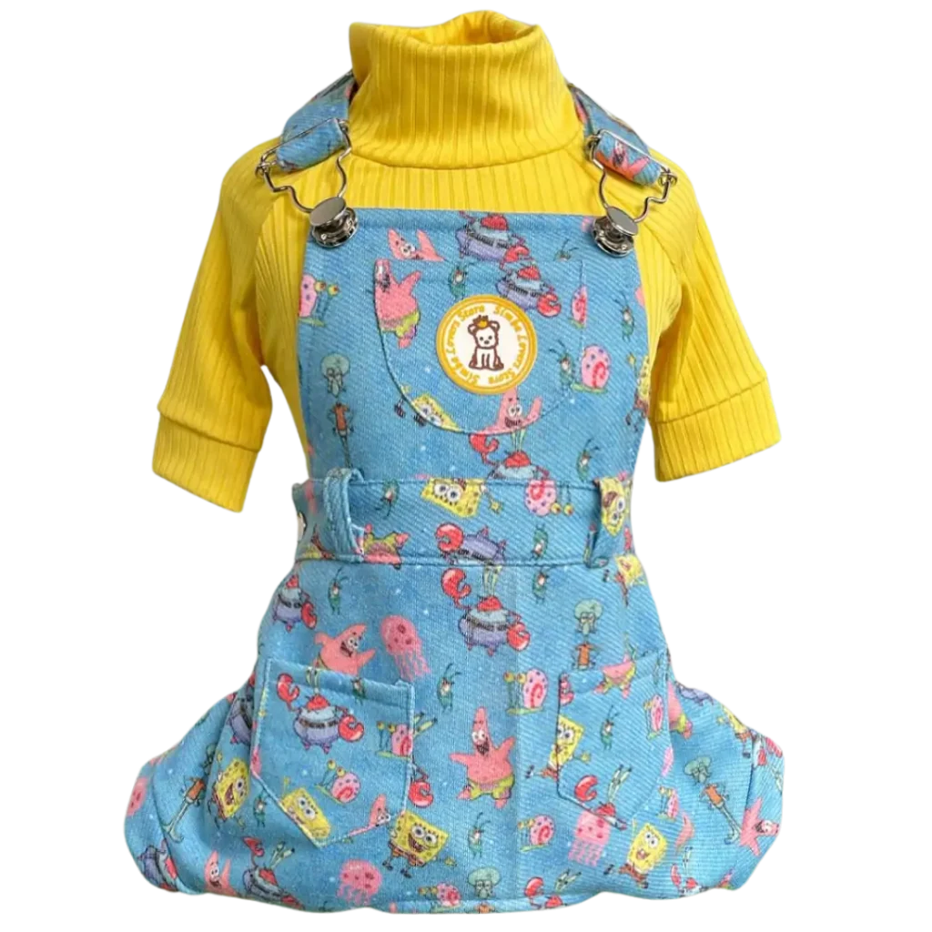 Jardineira Moletom Bob Esponja Azul Masc (SEM CAMISETA)