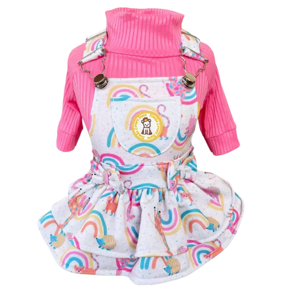 Jardineira Moletom Arco Íris Bichinhos Fem (SEM CAMISETA)