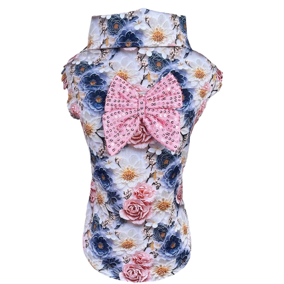 Camisa Regata Flores Azul Fem