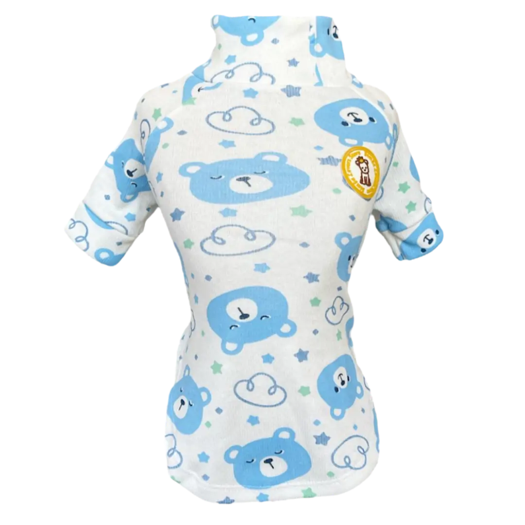 Camiseta Canelada Ribana Ursinho Nuvem Azul