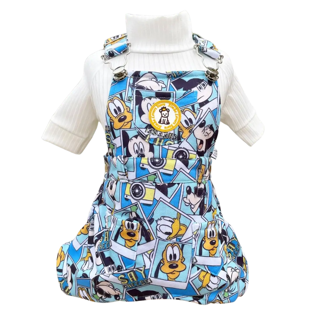 As alças da jardineiras são reguláveis/Jardineira com fechamento nas laterais com botão de pressão de metal