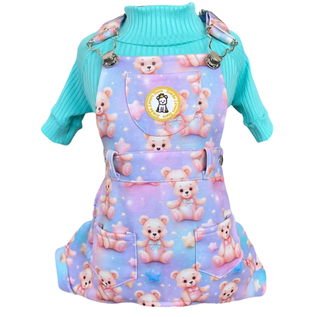 Jardineira Moletom Ursinho Estrelas Masc (SEM CAMISETA)