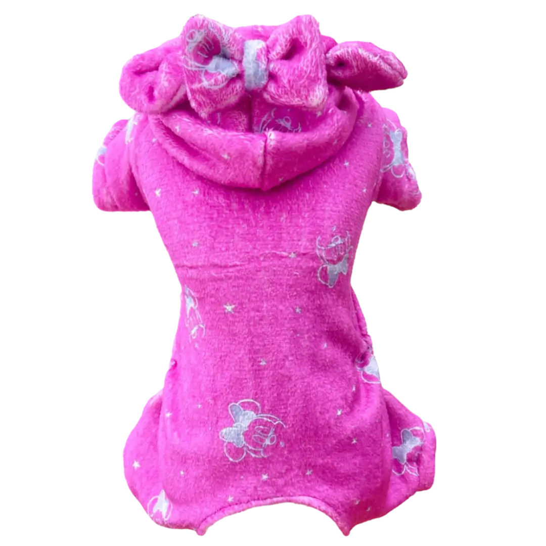 Pijama 4 Patas Fleece Minnie Rosa com Prata
