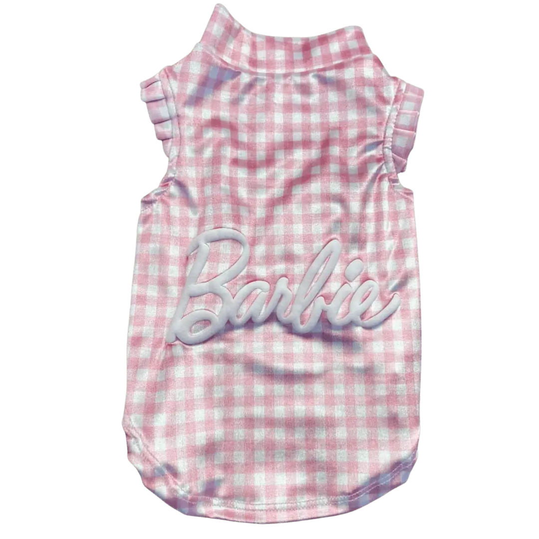 Regata UV Barbie Xadrez Rosa Bebê Fem